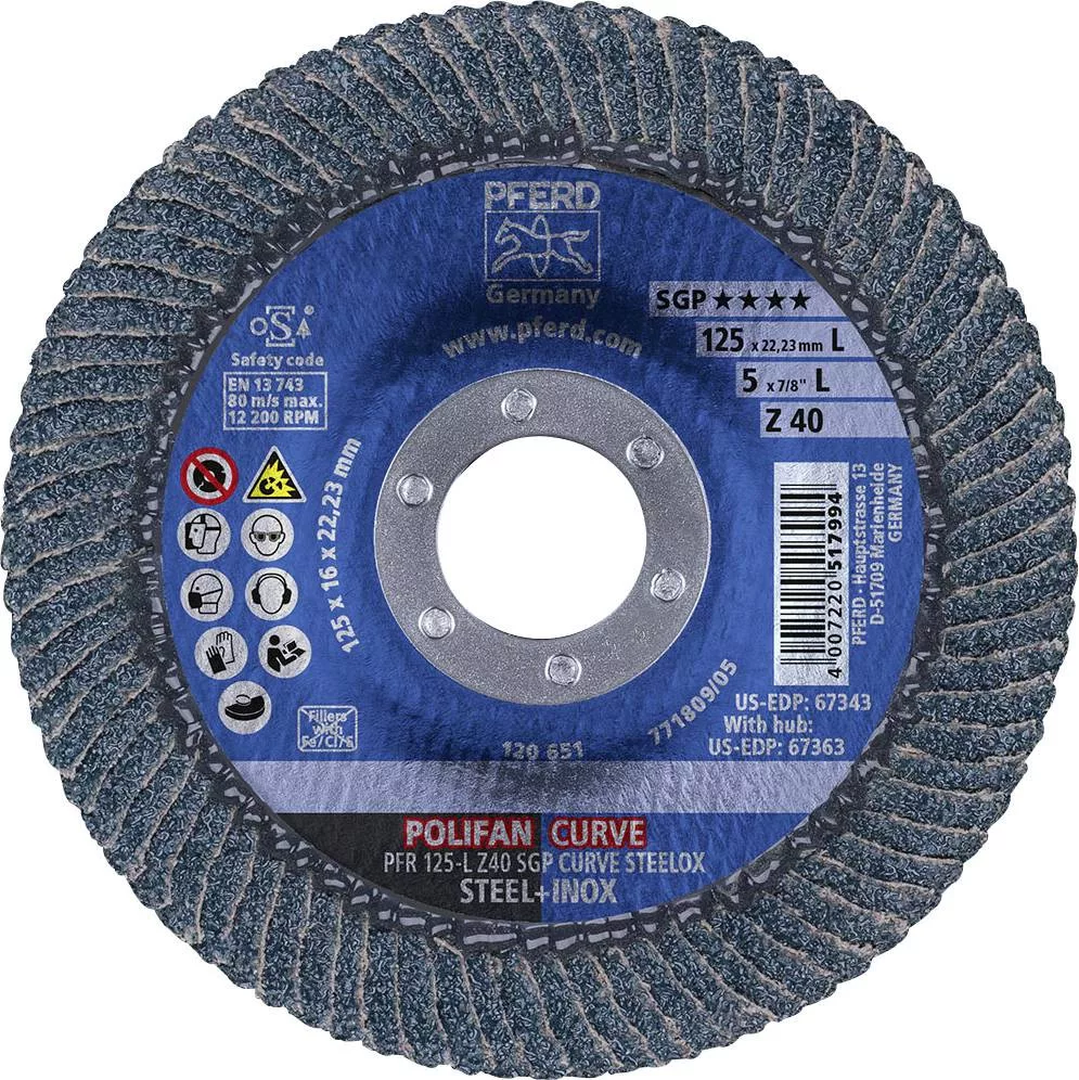 POLIFAN legyezőlapos csiszolókorong, PFR 125-L Z 40 SGP CURVE STEELOX