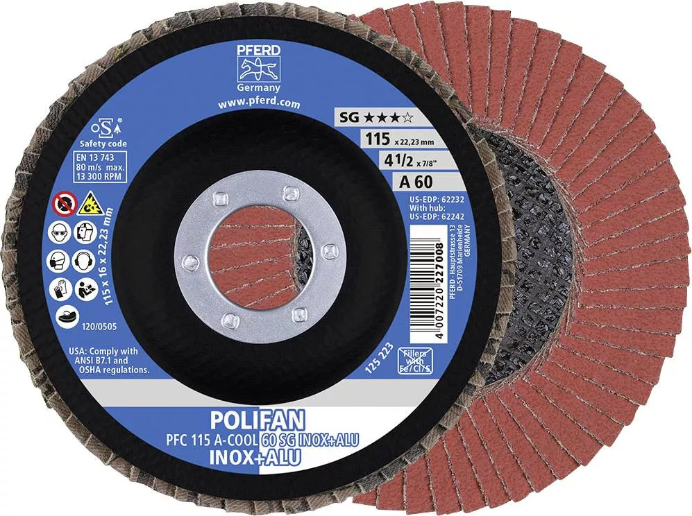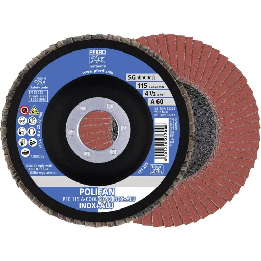 POLIFAN legyezőlapos csiszolókorong, PFC 115 A-COOL 60 SG INOX+ALU