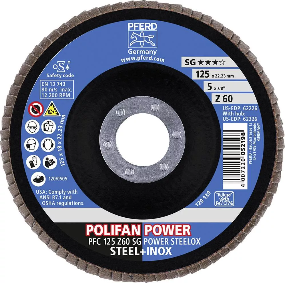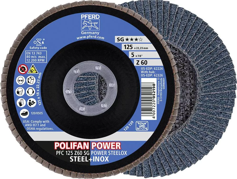 POLIFAN legyezőlapos csiszolókorong, PFC 125 Z 60 SG POWER STEELOX