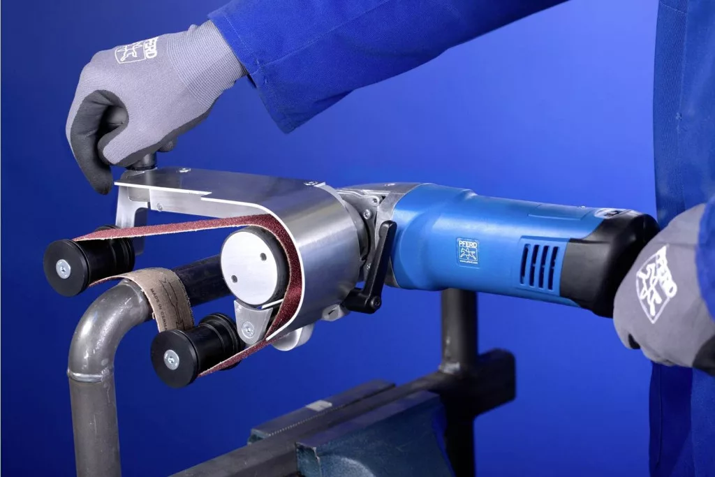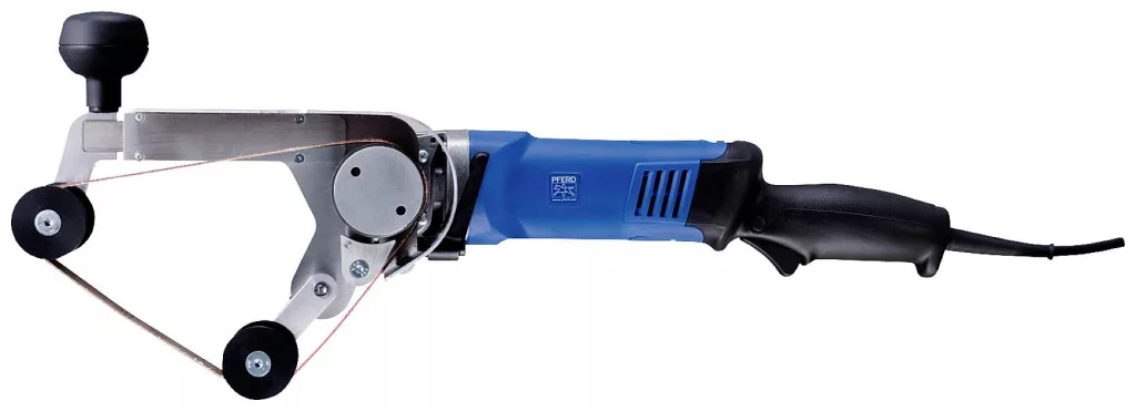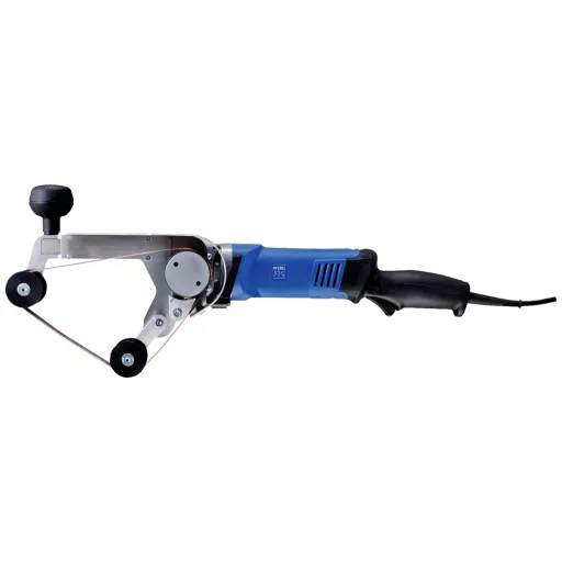 Jellemzők: Az állítható szalagvezető görgővel ellátott csőszalagcsiszoló különböző csőátmérőkhöz illeszthető