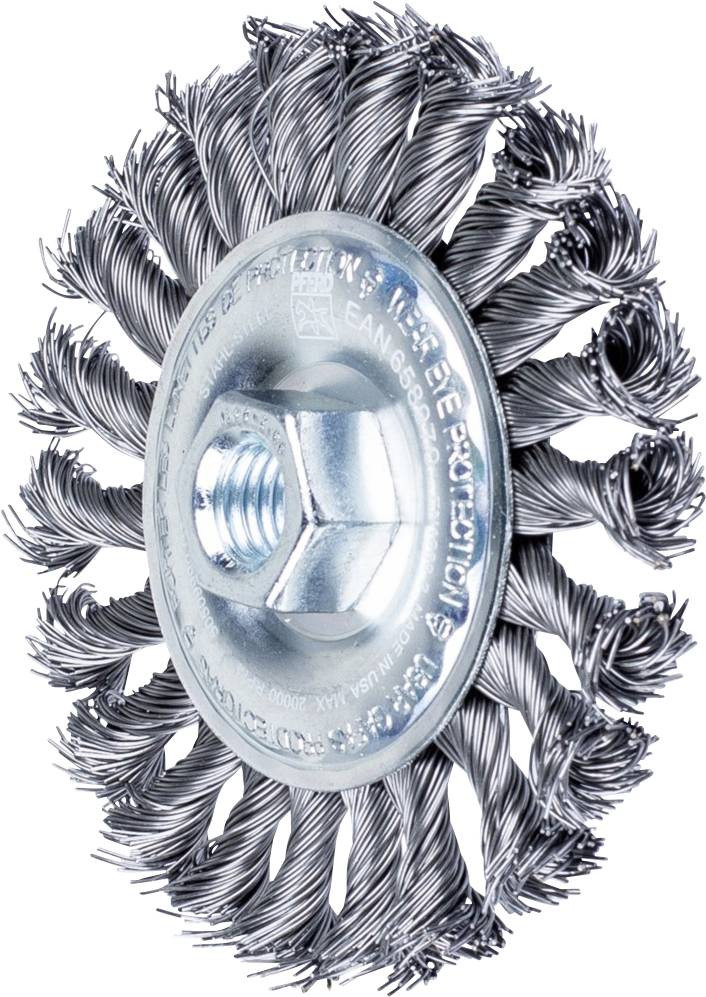 Műszaki adatok: Anyag: Acél · Felhasználási cél: Sorjázás Tiszta Festék eltávolítása Rozsda eltávolítása Vízkőmentesítés Távolítsa el az oxid rétegeket Hegesztési varratfeldolgozás Filéhegesztés megmunkálása Gyökérvarrás feldolgozása · Menet méret: M14 x 2 · Tartalom: 1 db · Termék típus: Körkefe · További műszaki adatok: Fonatok száma: 22