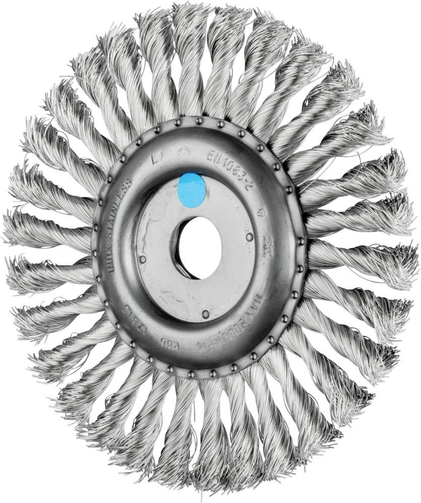 Műszaki adatok: Anyag: Nemesacél · Felhasználási cél: Sorjázás Tiszta Távolítsa el a szennyeződést Festék eltávolítása Rozsda eltávolítása Vízkőmentesítés Távolítsa el az oxid rétegeket Hegesztési varratfeldolgozás Filéhegesztés megmunkálása Gyökérvarrás feldolgozása · Menet méret: 22.2 mm · Tartalom: 1 db · Termék típus: Körkefe · További műszaki adatok: Fonatok száma: 30