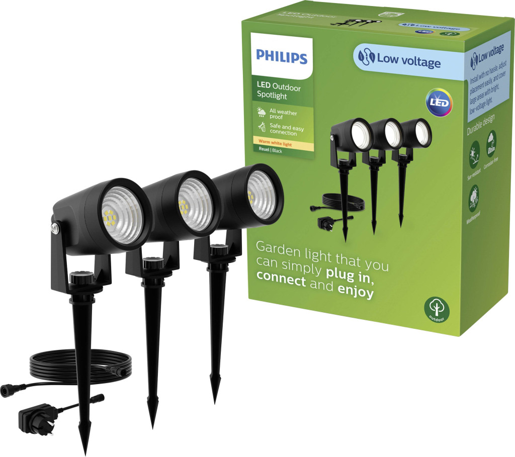 Philips Outdoor Low Voltage Reuel Spots EU készlet 3 db 3x1,5W, 24V, 2700 Kelvin, 180 Lumen, IP44, fekete