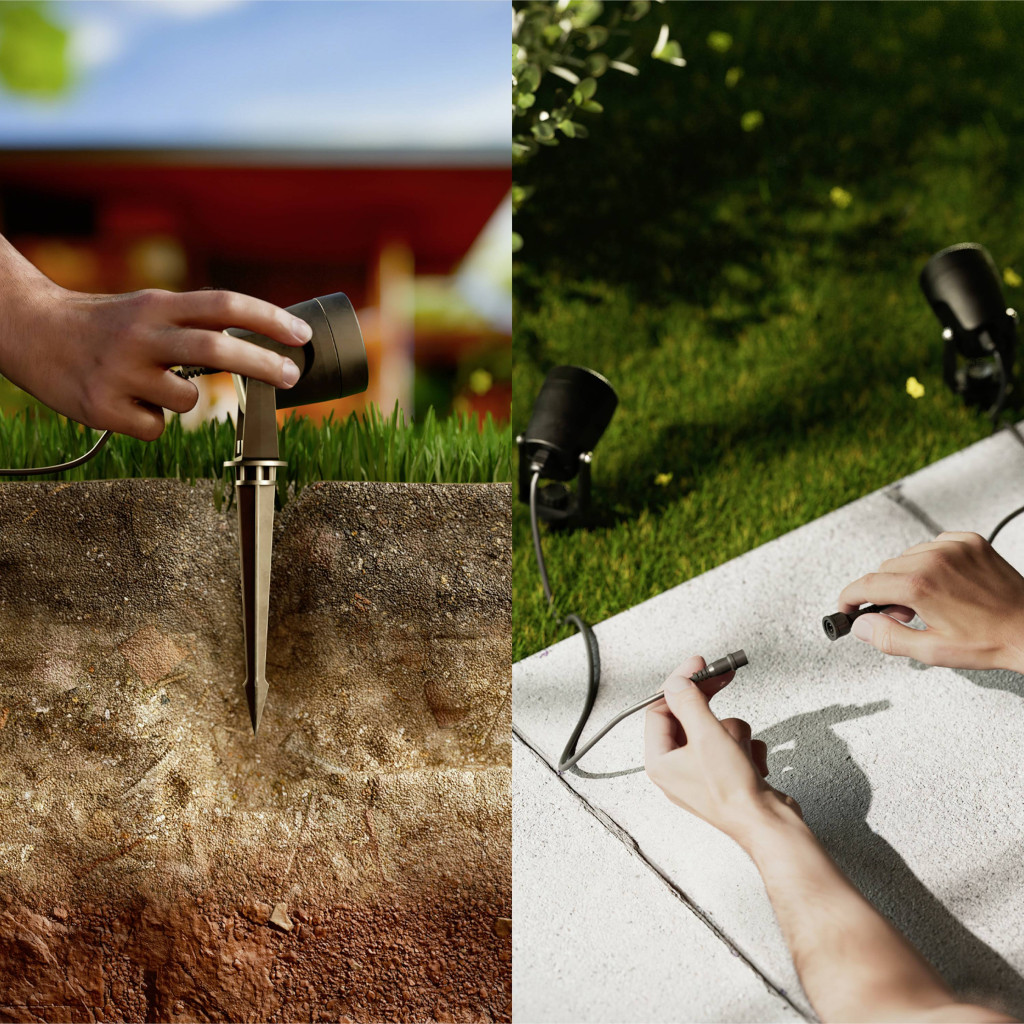 A Philips GardenLink kisfeszültségű kültéri lámpák könnyen és biztonságosan felszerelhetők. Egyszerűen csatlakoztasson több lámpát egyetlen tápegységhez, és dugja be a konnektorba. Adja hozzá és helyezze át a lámpákat, amikor csak akarja. Mivel a lámpák alacsony feszültségen működnek, nincs veszélyben sem Ön, sem családja, sem látogatói, sem háziállatai.