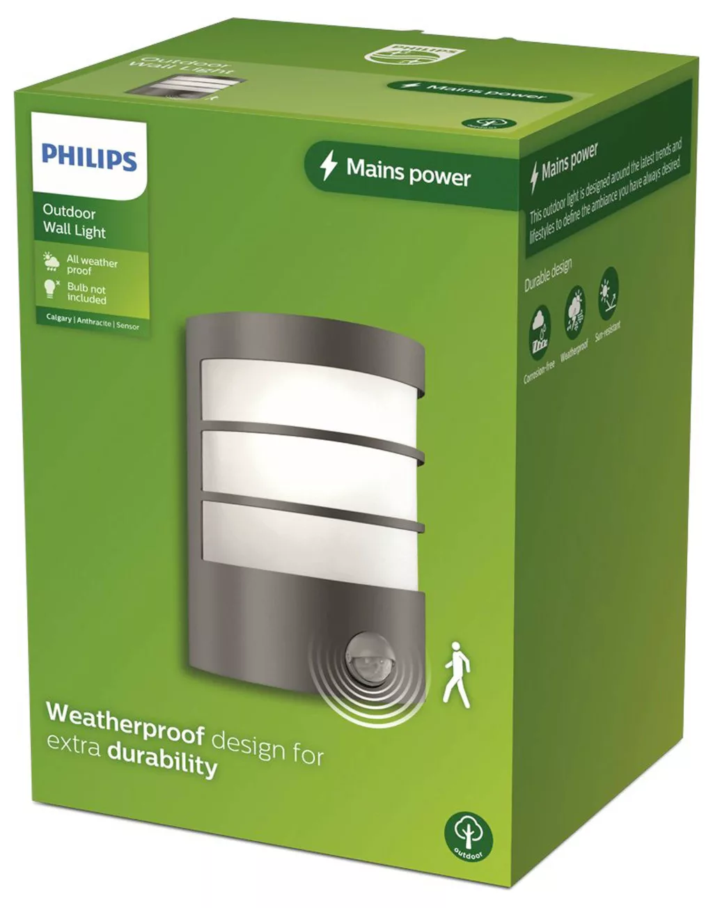 Philips Outdoor Calgary fali lámpa mozgásérzékelővel, max. 25W, izzó nélkül E27, IP44, antracit