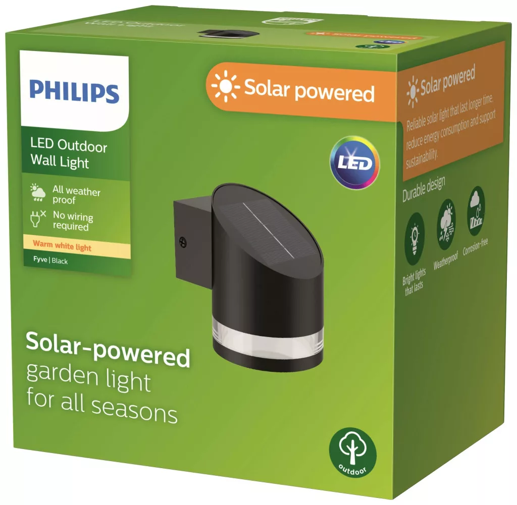 Philips Outdoor Solar Fyve fali lámpa 1,5 W, nappali fényérzékelő, 2700 Kelvin, fekete