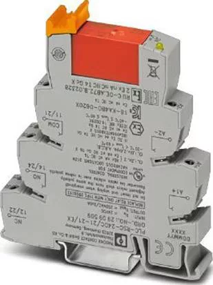 PLC-INTERFACE, amely egy 14 mm-es sínre szerelhető alapcsatlakozóból áll, csavaros csatlakozással és dugaszoló relé tápkapcsolóval, 2 váltó érintkezővel, bemeneti feszültség 24 V DC. Az ATEX / IECEx (2. zóna) és az Ex Zone I. osztály, Div. második