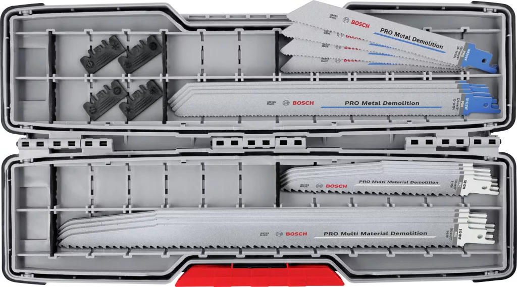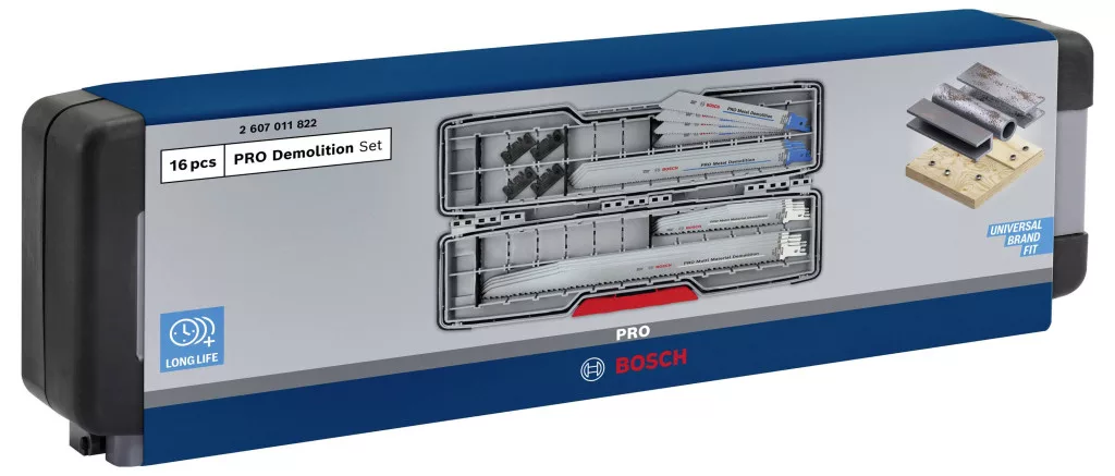 Hosszú élettartam a bontási munkákhoz és a jó pengekezeléshez! Bi-metál fűrészlap: A kemény fogakat rugalmas pengetesttel kombinálja a dugattyús fűrészek kiváló eszközök a bontási munkákhoz. Ez a PRO bontókészlet válogatott Bosch PRO késeket tartalmaz, amelyekkel igényes bontási munkákat végezhet. A készlet rendkívül hatékony PRO pengéket tartalmaz a különféle építőanyagok robusztus vágásához. Robusztus BI-fém konstrukciójuk vastag HCS-testtel, edzett HSS-fogakkal párosul. Nem számít, milyen bontási munkákat kell végeznie, ezzel a készlettel mindent kézben tarthat. Speciálisan kialakított PRO Tough Box-ban érkezik, és a készlet minden pengéje bizonyítottan hosszú élettartamot biztosít.
