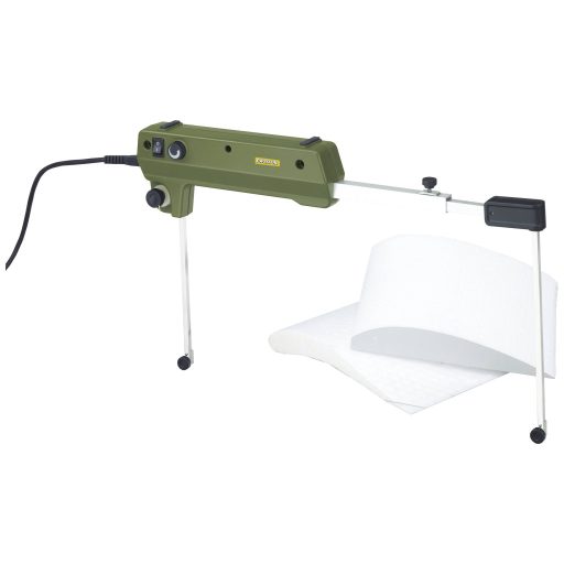 Polisztirol, keményhab, poliuretán, PU hab és hőre lágyuló fóliák vágásához. A vágóhuzal hőmérséklete a praktikus forgatógombbal előre kiválasztható az anyagnak megfelelően, és elektronikusan állandó értéken tartható a készülékkel végzett munka során. A szállítási terjedelem a csavaros bilincsen kívül egy orsót tartalmaz 30 m Ø 0,2 mm vágóhuzallal.