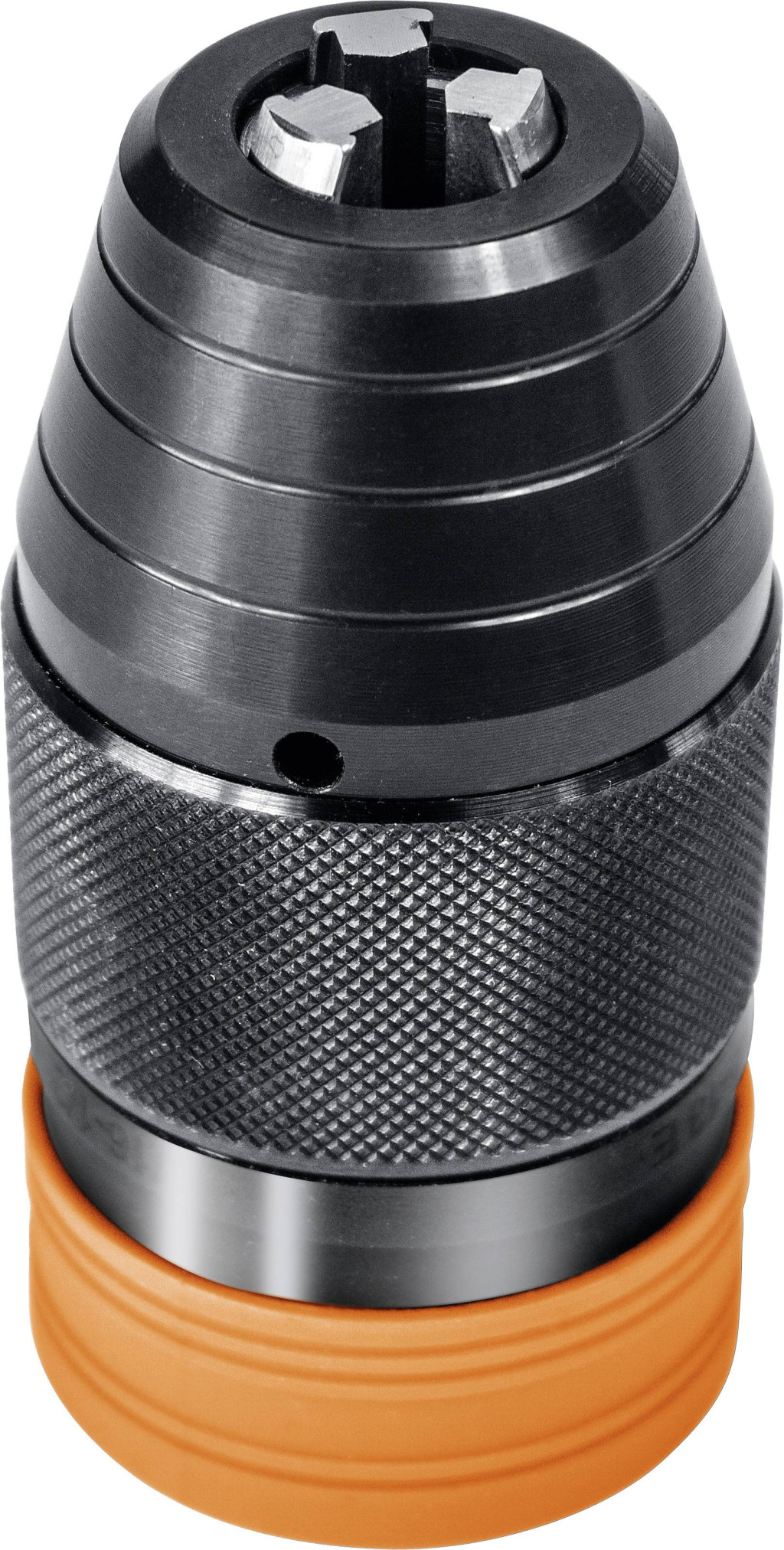 Automatikusan visszahúzódó lapos állú fúrótokmány Röhm szilárd fémből Megakadályozza a sodródó fúrók és csapok forogását. Rögzítési tartomány 1,5 - 13 mm. Precíz munka a magas koncentrációnak (akár 0,35 mm) köszönhetően. Kompatibilis az összes FEIN vezeték nélküli csavarhúzóval QuickIN / QuickIN MAX interfésszel.
