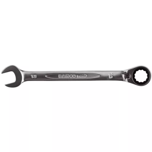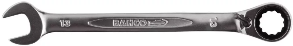 Racsnis gyűrűs-villáskulcs, metrikus. ISO 1711-1 és DIN 3113. Nyersanyag: jó minőségű acél ötvözet. 15°-os pofa állás vékony fejjel, a jobb hozzáférés érdekében. Racsnis funkció a gyűrű végén gyorsabb munkavégzéshez. A kettős hatlapú dinamikus hajtásprofil biztosítja a csavarok és anyák hosszabb élettartamát.