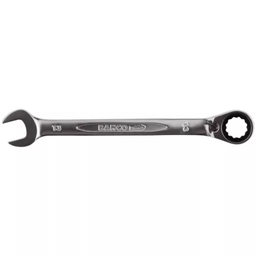 Racsnis gyűrűs-villáskulcs, metrikus. ISO 1711-1 és DIN 3113. Nyersanyag: jó minőségű acél ötvözet. 15°-os pofa állás vékony fejjel, a jobb hozzáférés érdekében. Racsnis funkció a gyűrű végén gyorsabb munkavégzéshez. A kettős hatlapú dinamikus hajtásprofil biztosítja a csavarok és anyák hosszabb élettartamát. 5° visszahajlási szög. Átkapcsoló kar a gyors irányváltáshoz. Nagyobb, mindkét oldalon elhelyezett méret jelölés a könnyebb beazonosításhoz. Krómozott mikro-matt kivitel minőségi felülettel.