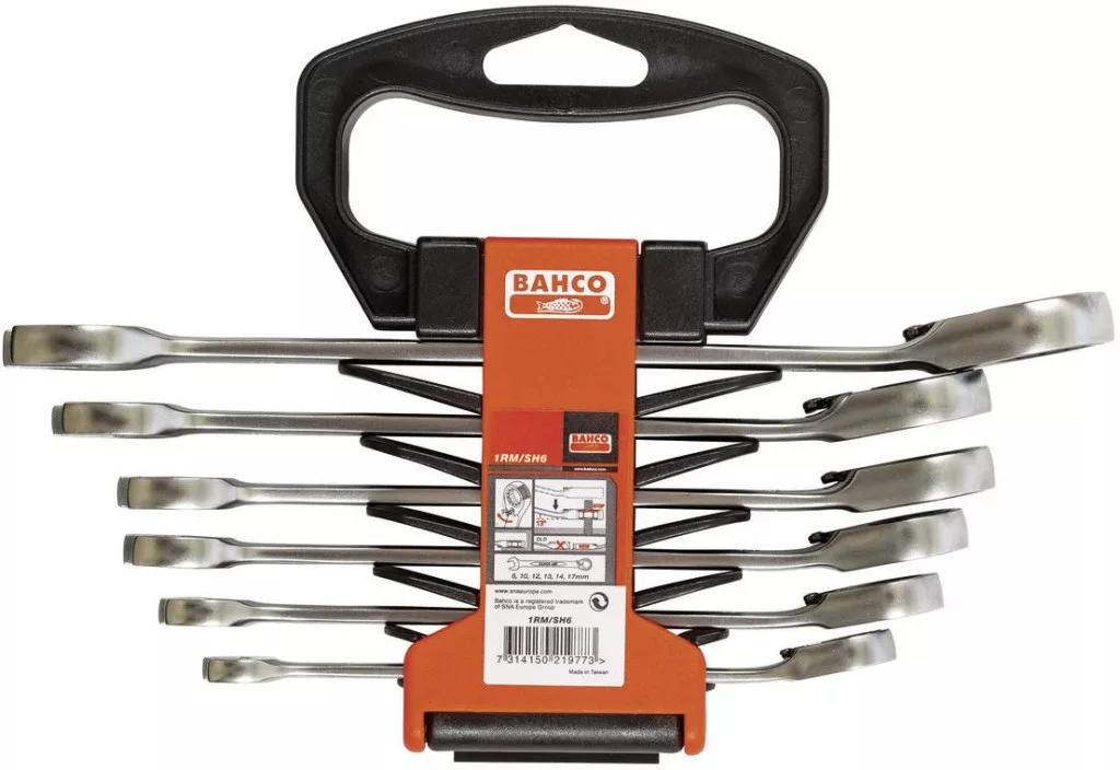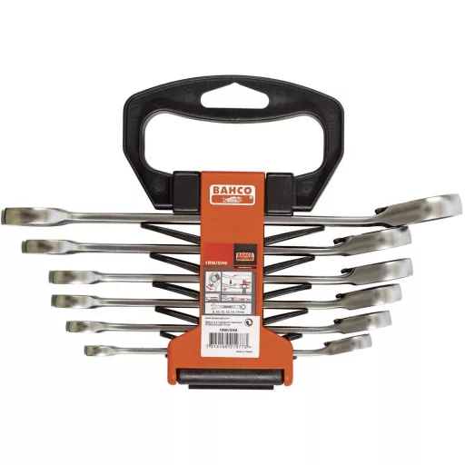 Kilincsműves gyűrűs villáskulcs készlet. Csomagolás: műanyag tartóban.