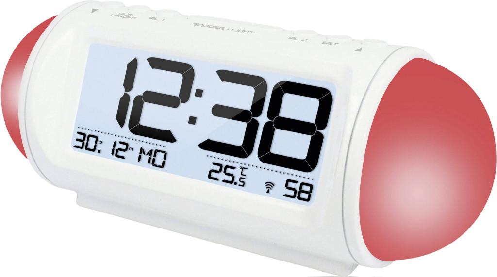 Jellemzők: Rádiójel vezérlésű óra (DVF-77) · 12/24 órás kijelzés · °C/°F kijelzés · Dátum és hét napjainak kijelzése 5 nyelven · 2 ébresztési idő szunnyadási funkcióval · Ébresztő fényjáték · Elalvás időzítő · LED-es háttérvilágítás · Dimmer érzékelő · Éjszakai fény.