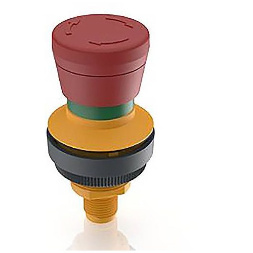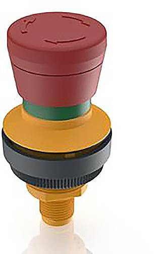 RAMO 30 E, M12, körgallér, 2 NC, arany, M12 5 tűs A-kódos, forgatással reset, piros gombafej, piros nyilak