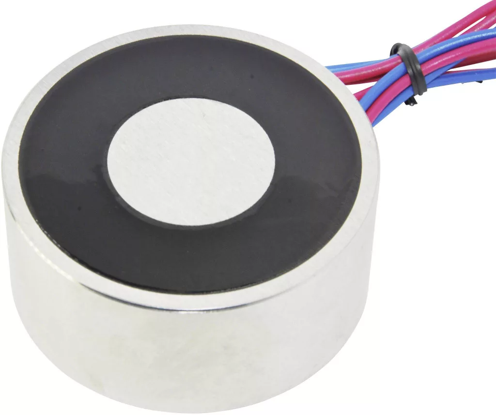 Műszaki adatok: Bekapcsolási időtartam: 10 % · Csatlakozó (építőelem): Kábel, nyílt véggel · Határhőmérséklet: 130 °C · Kivitel (mágnes): mágneses (áramtalan állapot) · Kábelhossz: 40.00 cm · Menet méret: M4 · Méret, hossz: 29 mm · Névleges feszültség: 12 V/DC · Súly: 700 g · Tartóerő: 960 N · Teljesítmény: 33 W · Átmérő: 63 mm