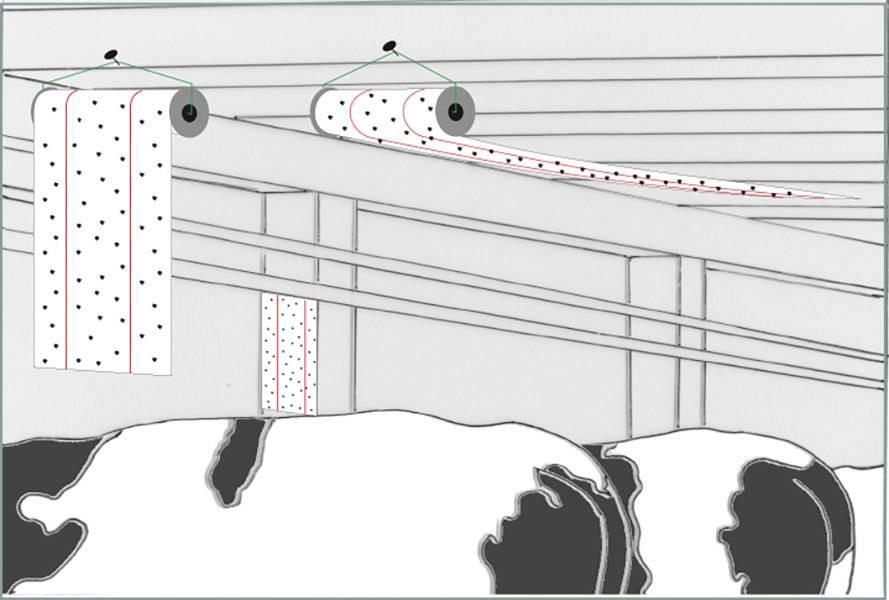 A fém konzollal könnyen felakasztható azokra a helyekre, ahol a legyek szívesebben ülnek. A ragasztófelülettel lefelé a papír vízszintesen közvetlenül a tehenek, sertések vagy borjak fölé is nyújtható. További vizuális ösztönzés a leszállóhelyek szimulációján keresztül.
