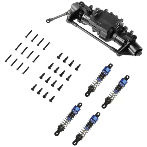 Szállítás tartalma: 1x szerelt első tengely , 4x lökhárítók , 12 db 2,5 x 16 méretű csavarfej , 12x lépcsős csavarok 3,6 x 12