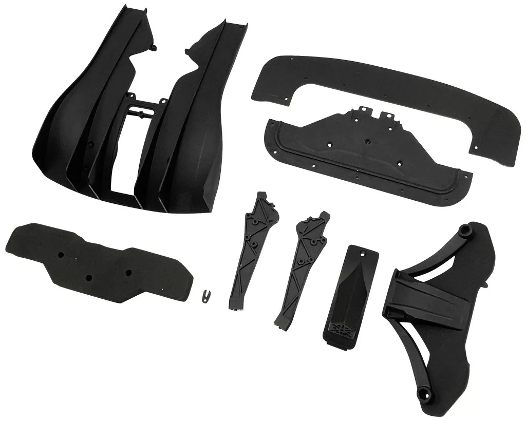 Műszaki adatok: A következő márkákhoz alkalmas: Reely · Alkalmas a következő alvázhoz: DW XL · Alkalmas a következő modellekhez: 1:7 4WD BL On Road "Deathwatcher XL" 6S (2586836, 2585837) · Alkalmazási cél: Tartozék · Alkatrész kivitel: Lökhárító / diffúzor · Modell típus: Sportkocsi · Méretarány: 1:7