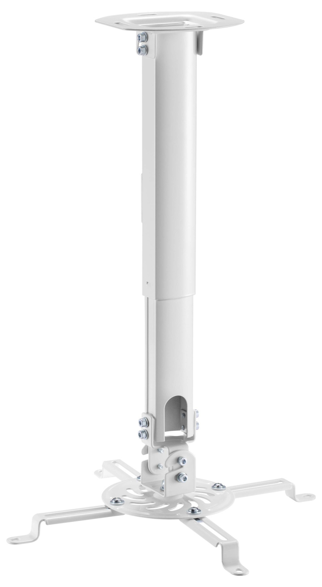 A 380 és 580 mm között állítható hosszúságnak köszönhetően ez a tartó további rugalmasságot kínál a különböző helyiségmagasságokhoz. Dönthető mennyezeti panelje sík és ferde mennyezetekhez egyaránt alkalmas.