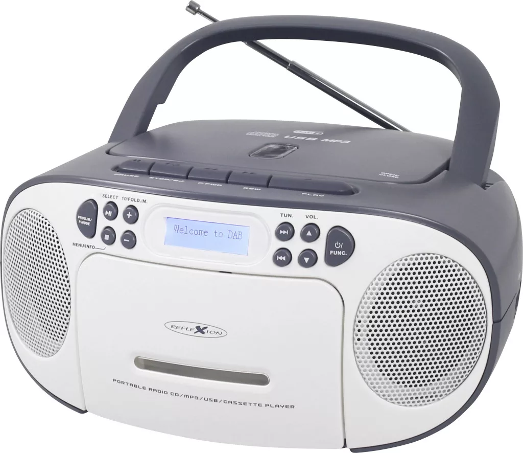Műszaki adatok: Bemeneti csatlakozók: Audio-Line bemenet, USB-A (USB 2.0) · Funkciók (HiFi): AUX, CD, Kazetta, USB · Gyártói szín: Fehér, Szürke · Kimeneti csatlakozók (számítástechnika/multimédia): Fejhallgató (3.5 mm jack) · Méret, magasság: 260 mm · Méret, mélység: 115 mm · Méret, szélesség: 230 mm · Rádió tuner: DAB+, DAB, URH · Támogatott lejátszási formátum: CD, CD-R, CD-RW, MP3, MP3 · Tápellátás: Tápegység (vele szállítjuk), 6 db babyelem (nem szállítjuk vele) · Vezeték nélküli töltő funkció: Nem
