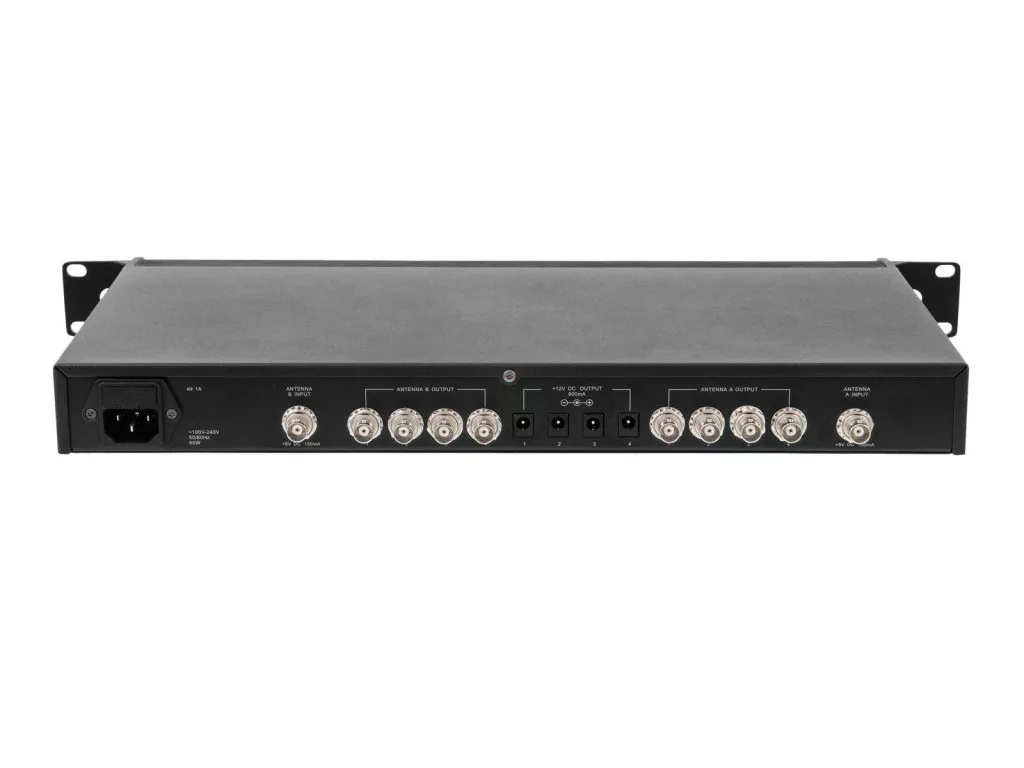 Műszaki adatok: Gyártói szín: Fekete · Méret, hossz: 252 mm · Méret, magasság: 45 mm · Méret, szélesség: 483 mm · Súly: 2.6 kg · További műszaki adatok: Tápegység: 100–240 V váltakozó áram, 50/60 Hz · Össz csatlakozási érték: 60 W · Frekvenciatartomány: 470–900 MHz · Impedancia: 50 ohm · Antenna csatlakozók: 2 x BNC · Vevőkimenetek: 8 x BNC · Alacsony feszültségű kimenetek: 4 x 12 V DC · Méretek: 482 x 242 x 45 mm · Rack felszerelése 1 U-val · Súly: 2,6 kg · Csomag súlya: 3,67 kg