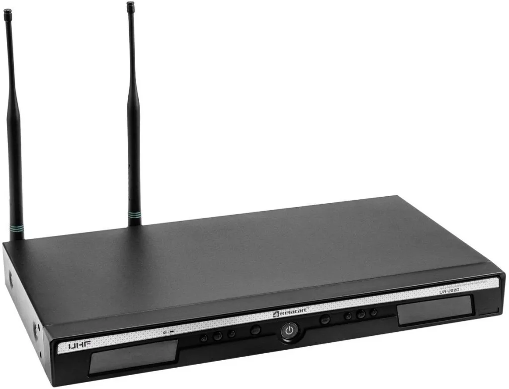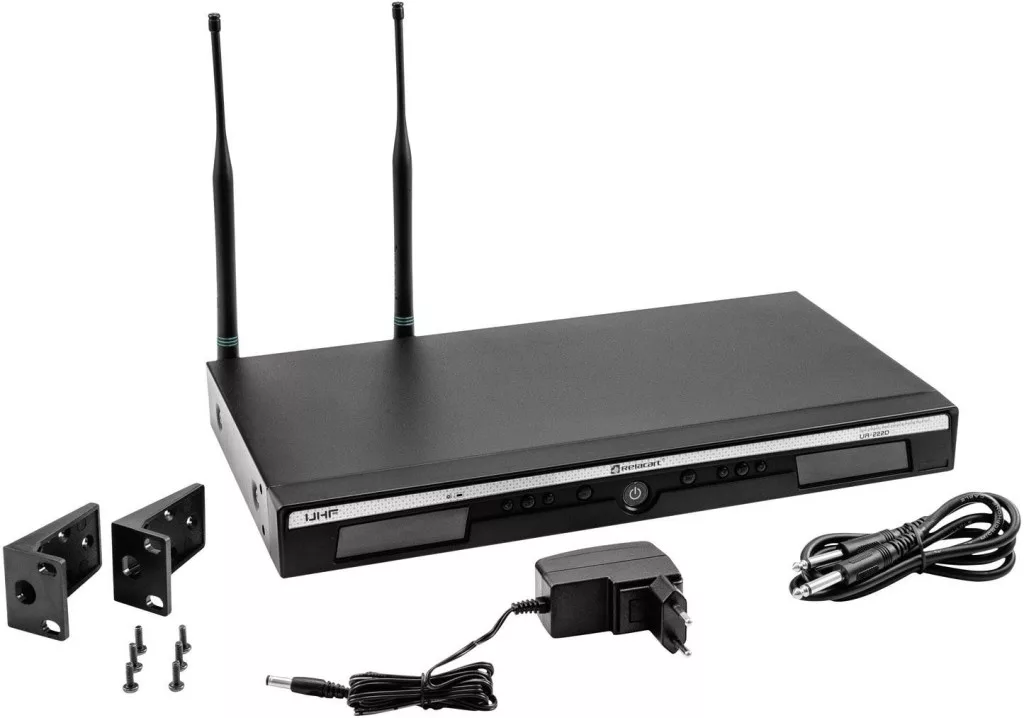 Jellemzők: 2 regisztráció nélküli frekvenciatartomány: 823–832 MHz (duplex rés) és 863–865 MHz 10 csoport 90 rögzített frekvenciával 11 MHz-es átkapcsolási sávban. Legfeljebb 9 rendszer működtethető párhuzamosan interferencia nélkül. Pilot tone technológia (PLL) interferenciamentes működéshez. Tartomány látótérrel kb. 80 méter Automatikus frekvenciakeresés (AFS) az interferenciamentes vételi csatornák gyors és hibamentes szinkronizálása a vevő és az adó között infravörös LCD-kijelzőn keresztül a mikrofon, az A / B antenna kapacitásának, az RF vétel erősségének, az AF audio szintjének és az XLR és 6,3 frekvencia frekvenciájának. mm jack kimenet 2 leválasztható antenna (BNC) lehetővé teszi az R-14D antennaelosztóval való kombinációt. Szállítás praktikus szállítózsákban jack kábellel és tápegységgel. Robusztus fémház 483 mm-es tartóba szerelhető zárt rögzítőelemmel. Megfelelő távadók külön kaphatók: kézi mikrofon (UH-222D) és öv-adó (UT-222) Nyilvántartásba vétel és díjmentes az EU nagy részein (duplex eltérés, kérjük, adja meg az országot Specifikus ellenőrzés) Be / Ki / Némító kapcsoló: Igen.