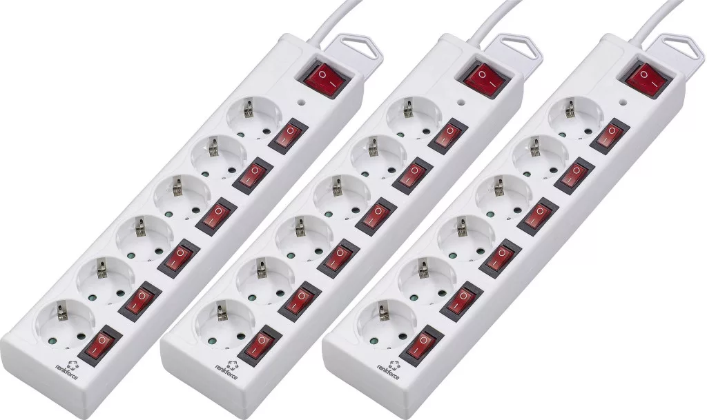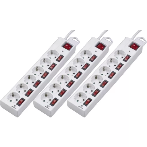 Hálózati elosztók túlfeszültség elleni védelemmel, 6 részes, külön kapcsolható, fehér, 3 részes készlet