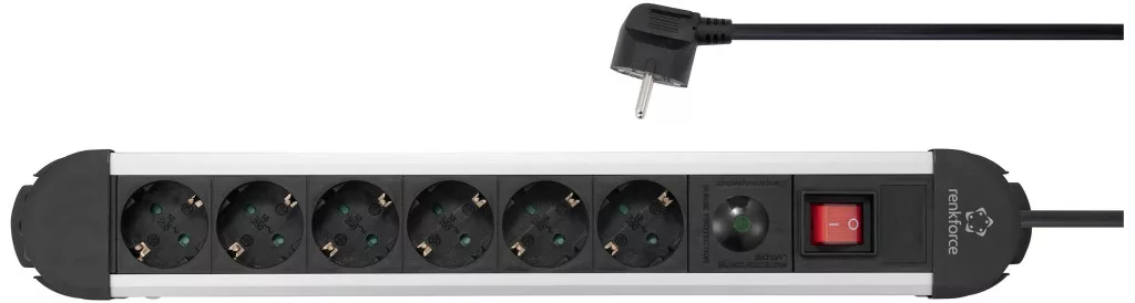Renkforce RF-6417718 Túlfeszültség ellen védő elosztó 6 részes Fekete,Alumínium Védőérintkezős 1 db