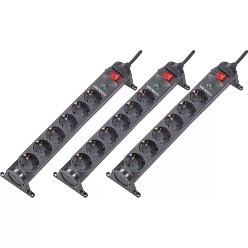 6-szoros túlfeszültség-védő aljzat csík forgatható 3 darabos készlet