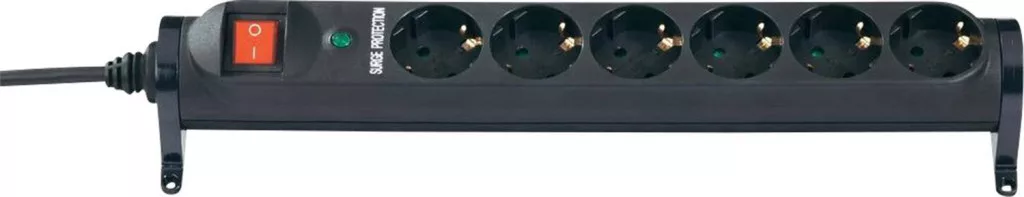 Műszaki adatok: Alkalmazás helye: Beltér · Anyag: Műanyag · Csatlakozási teljesítmény: 3680 W W · Dugaljak száma: 6 · Gyártói szín: Fekete · Hálózati csatlakozó típus: Védőérintkezős · Hálózati elosztó jellemzők: Túlfeszültség elleni védelem, Kapcsolóval, Gyermekvédelem, Forgatható elosztó · Kábel típus DIN/VDE szerint: H05VV-F 3G 1,5 mm² · Kábelhossz: 1.50 m · Levezető áram: 6.5 kA · Méret, hossz: 370 mm · Méret, magasság: 60 mm · Méret, szélesség: 90 mm · Működés jelző: Optikai · Szerelési mód: Szerelési lyukak · Védelmi típus: IP20 · Üzemi feszültség: 230 V