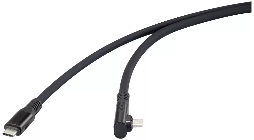 Renkforce USB4 kábel egyoldalas 90°-os szögben elfordított csatlakozóval és integrált mágneses USB-C® adapterrel.