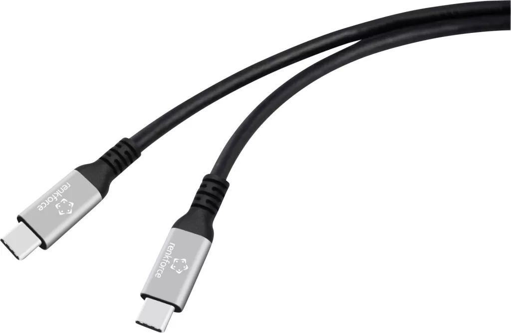 Renkforce #####USB-C Kabel #####USB4® #####USB-C® Stecker,#####USB-C® Stecker 1 m Fekete Alumínium dugó,Szilikon,Nagy rugalmasságú,#####8K UHD RF-6805036