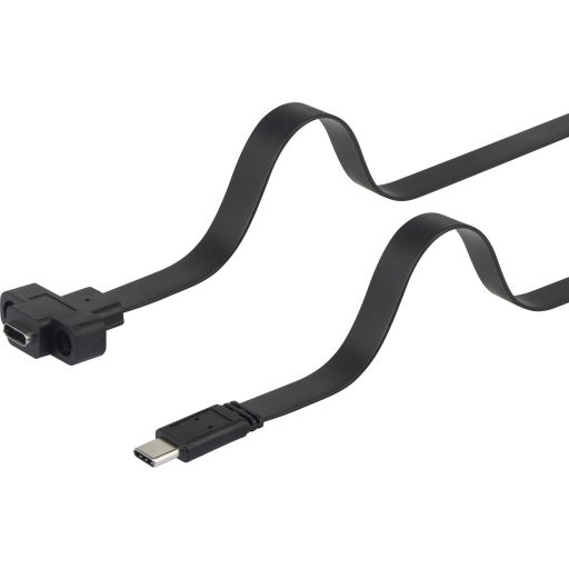Technical specifications: AWG: 30 · Belső vezető anyaga: Vörösréz · Csatlakozó típus: USB 3.0 · Csatlakozók: #####USB-C® Stecker,#####USB-C® Buchse · Dugó kivitel: egyenes · Kábel kivitel: Lapos · Kábelhossz: 0.50 m · Max. töltőáram: 15 W @ 5 V / 3 A · Max. átviteli sebesség: 10 GBit/s · Specifikáció: USB 3.2 Gen1 (USB 3.0 / USB 3.1 Gen1) · Szín: Fekete · Vezeték jellemzők: Csavarozható,Nagy rugalmasságú · Árnyékolás: Árnyékolás nélkül · Összekapcsolási mód: USB-C™ auf USB-C™