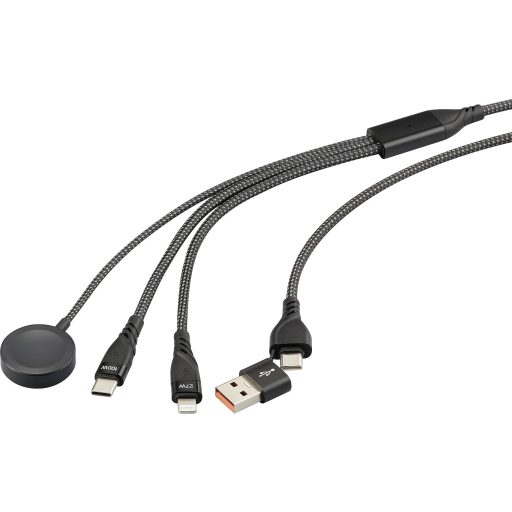 A multifunkcionális töltőkábel három kimenettel rendelkezik, amelyek kompatibilisek az Apple Lightning és az USB-C® csatlakozókkal, valamint egy mágneses csatlakozóval, így számos különböző eszközt tölthet. Támogatja 3 eszköz egyidejű töltését, és kompatibilis iPhone-nal, órákkal, iPad sorozattal és más elektronikus eszközökkel.