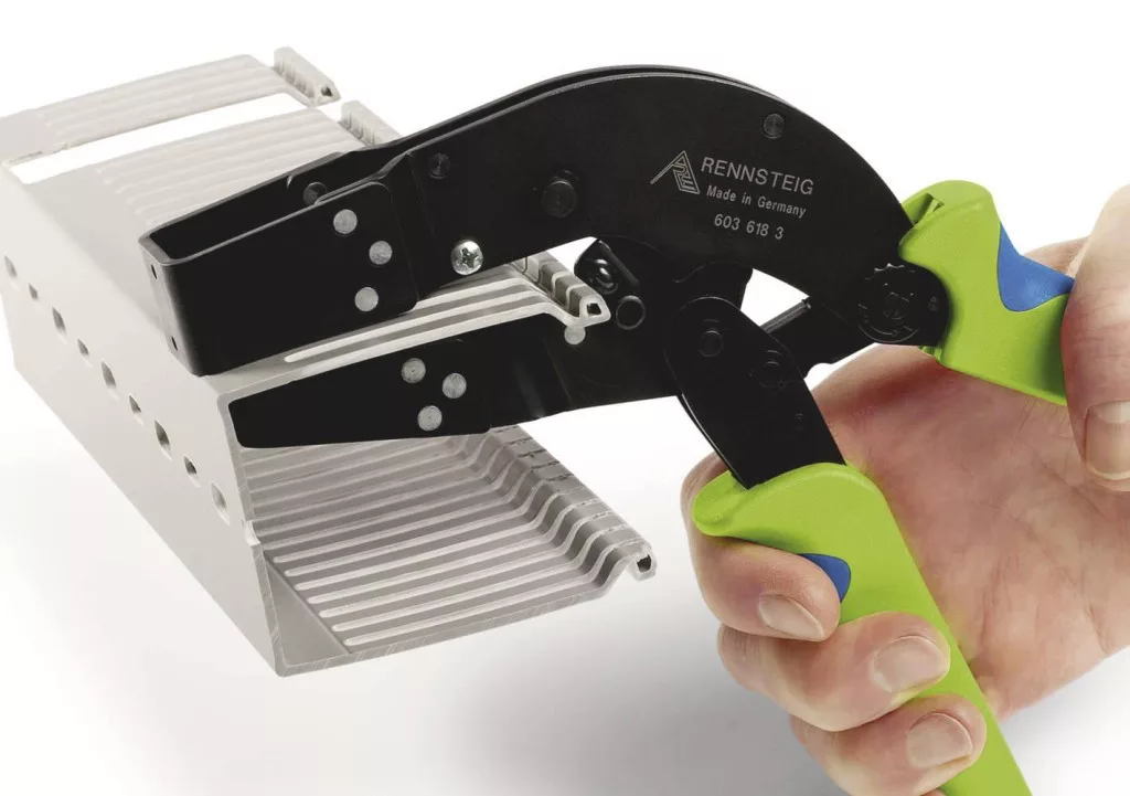 Equipment: Speciális fogók kábelcsatornák sínjeinek bevágásához Vágási hossz egyetlen vágással akár 80 mm Vágási szélesség 24 mm · Tiszta, sorjamentes vágás egészen a csatorna aljáig · Szerszám integrált szekciókidobóval.