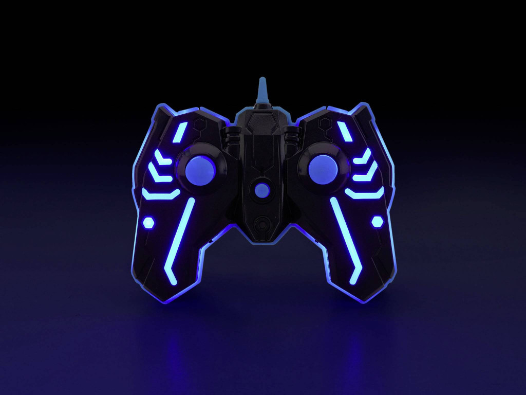 A 2,4 GHz -es távirányító lehetővé teszi, hogy több baráttal vezessen egyszerre, és ötletes fényhatásokat is tartalmaz. A tápegységhez egy 3,7 V-os Li-Ion akkumulátor és egy megfelelő USB töltő tartozik. Készen állsz egy éjszakai versenyre?