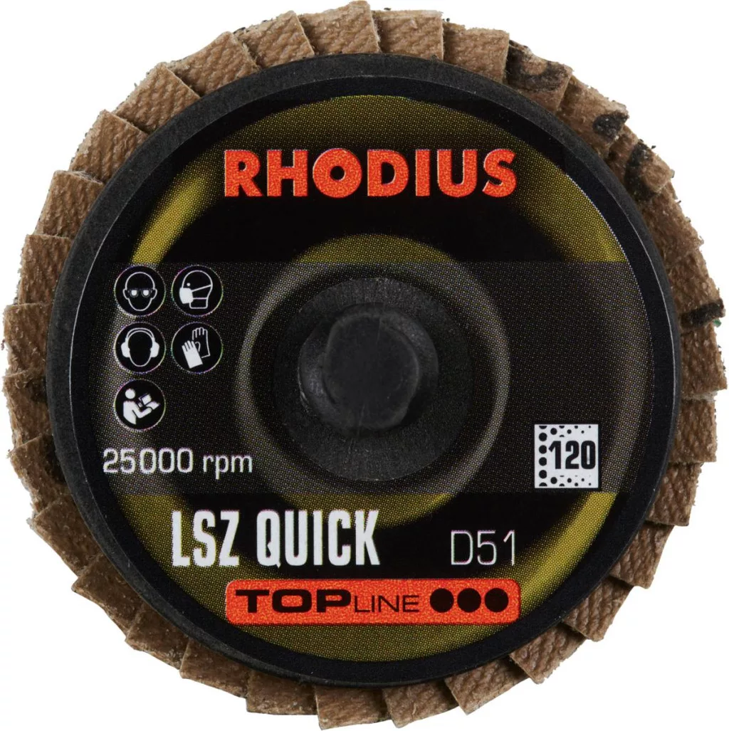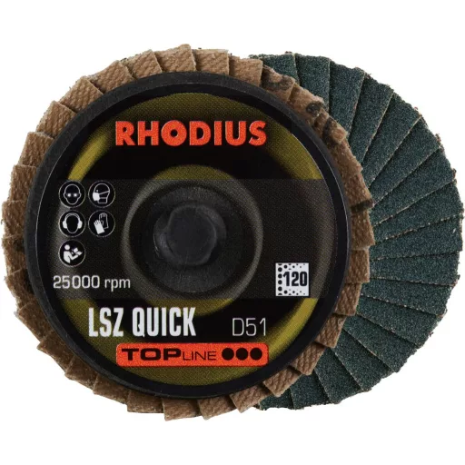 RHODIUS LSZ QUICK, 10 db cirkónium lapos csiszolótárcsa 51 mm, szemcse 120, TOPline, rozsdamentes acélhoz, acélhoz, színesfémekhez