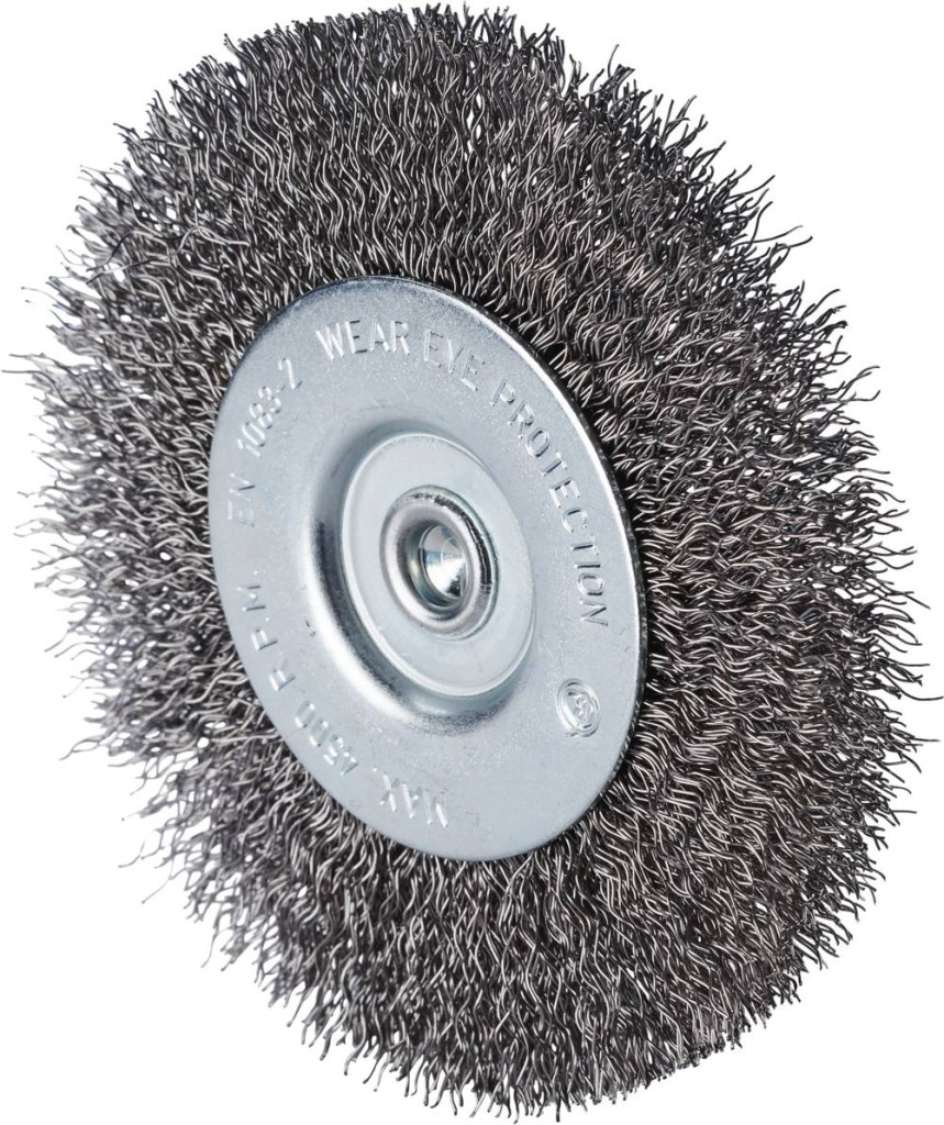 Rozsdamentes körkefe préselt rozsdamentes acél huzallal és 6 mm-es tengellyel fúrókhoz.