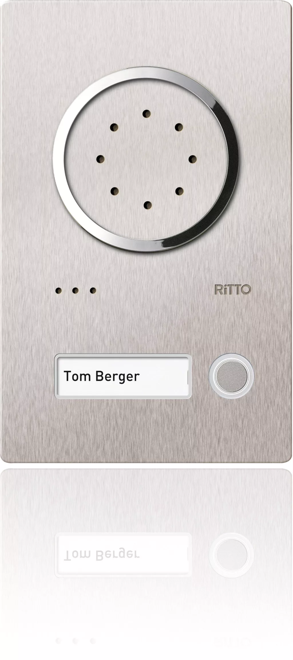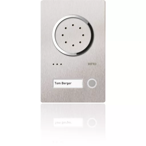 Műszaki adatok: Anyag (kültéri egység): Nemesacél · Gyártói szín: Nemesacél · Méret, magasság: 241 mm · Méret, mélység: 2.5 mm · Méret, szélesség: 154 mm · Szerelési mód (kívül): Csavaros rögzítés · További műszaki adatok: Cserélhető névtábla a frontmechanikailag állítható színes fényképezőgépen · Tápellátás: Hálózati tápegység rendszer buszról