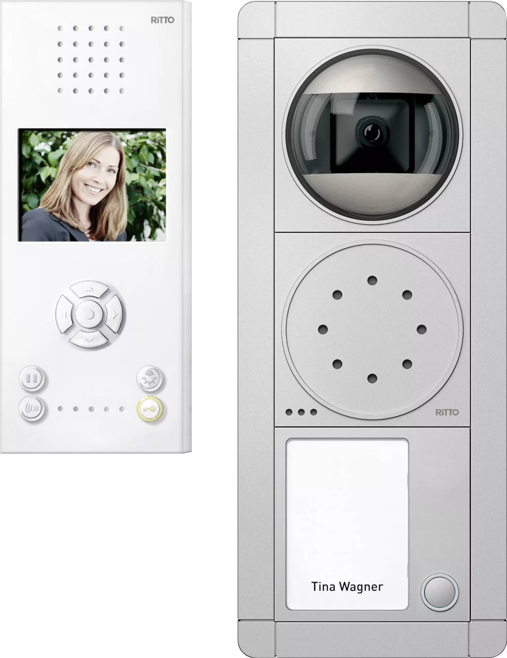 Műszaki adatok: Anyag (kültéri egység): Nemesacél · Bővíthető: Beltéri egység · Dallamok száma: 10 · Gyártói szín: Fehér, Ezüst · Hangrendszer összetevők: Komplett készlet · Kaputelefon jellemzők: Világító névtábla · Kijelző típus: Színes TFT/LC · Képernyő Ø (coll): 3.5 coll · KépernyőØ (cm): 8.9 cm · Látószög, vízszintes (max.): 150 ° · Szerelési mód (belül): Falra szerelhető · Szerelési mód (kívül): Falra szerelhető · Szám (egységek/résztvevők): 1 · Tápellátás: Hálózatról üzemeltetett · Átviteli mód: Vezetékes