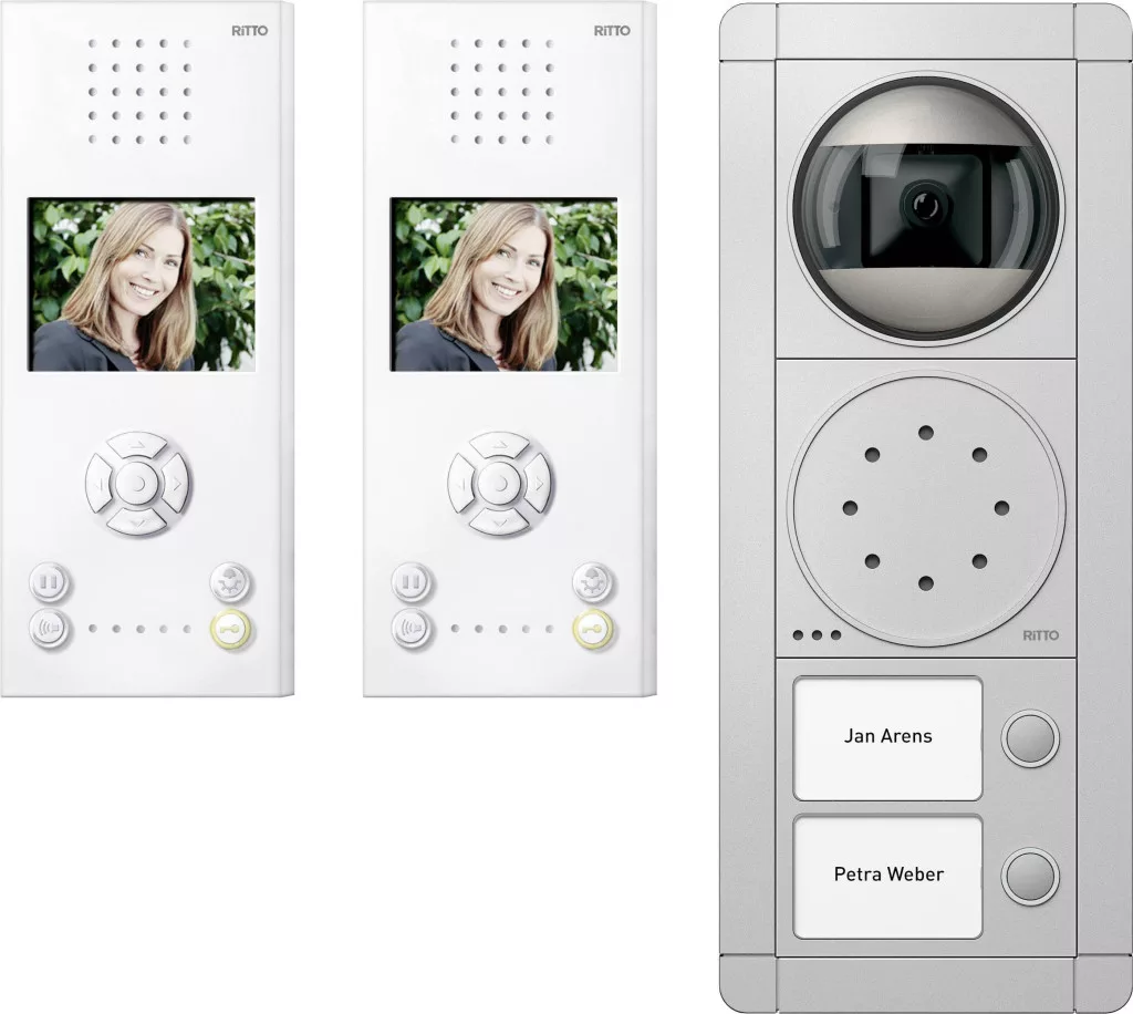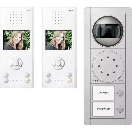 Műszaki adatok: Anyag (kültéri egység): Nemesacél · Bővíthető: Beltéri egység · Dallamok száma: 10 · Gyártói szín: Fehér, Ezüst · Hangrendszer összetevők: Komplett készlet · Kaputelefon jellemzők: Világító névtábla · Kijelző típus: Színes TFT/LC · Képernyő Ø (coll): 3.5 coll · KépernyőØ (cm): 8.9 cm · Látószög, vízszintes (max.): 150 ° · Szerelési mód (belül): Falra szerelhető · Szerelési mód (kívül): Falra szerelhető · Szám (egységek/résztvevők): 2 · Tápellátás: Hálózatról üzemeltetett · Átviteli mód: Vezetékes