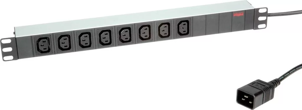 19 hüvelykes csatlakozócsík 8x C13 csatlakozással és tápvezetékkel (2m) C20 csatlakozóval, 1U, 19 "szekrényekbe történő beépítéshez, beépítési konzollal együtt.