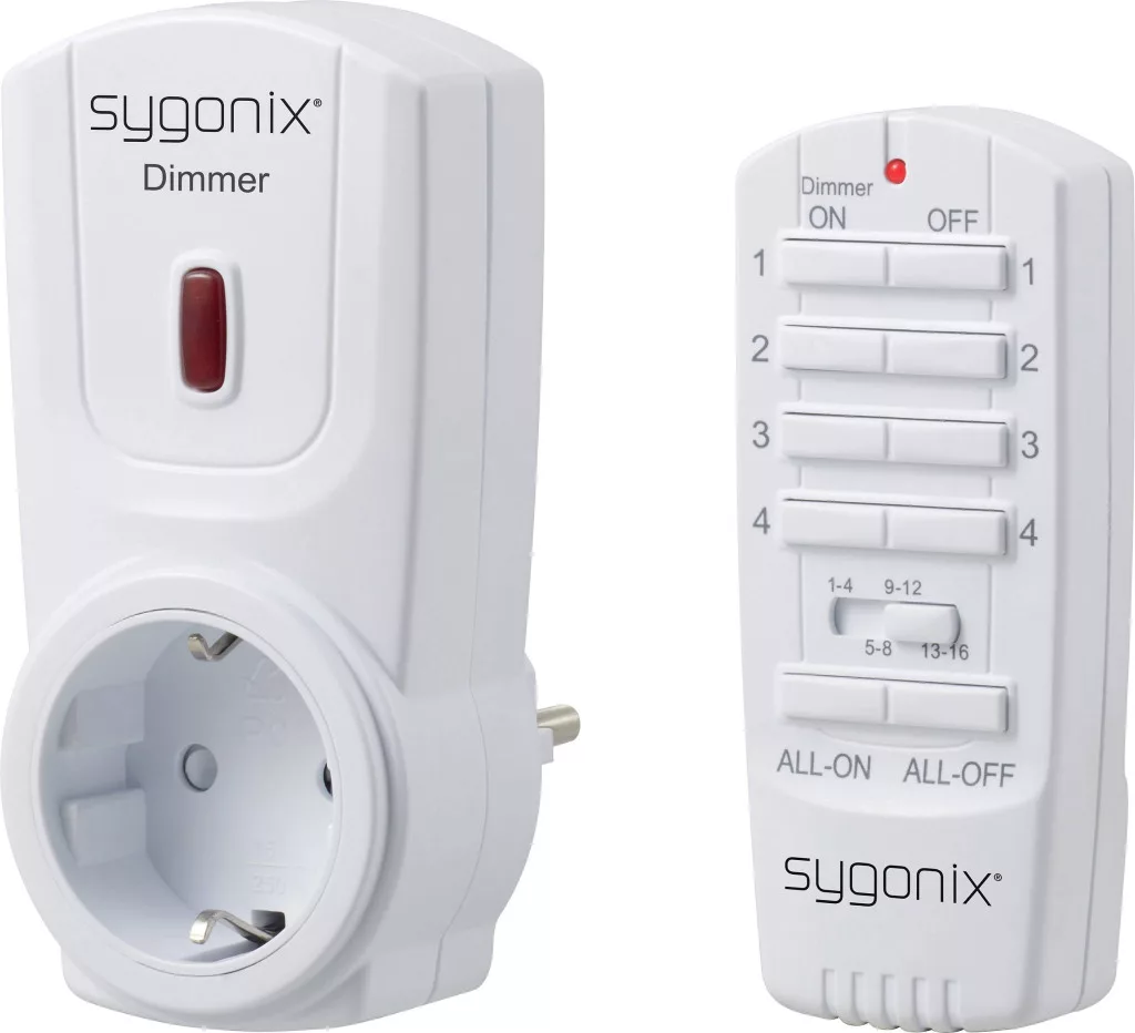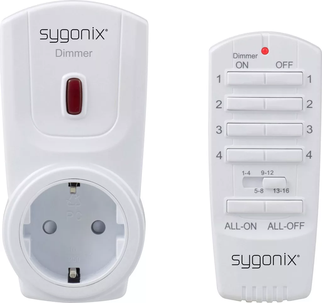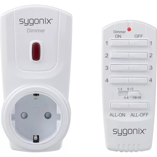 Ez a készlet egy rádiójel vezérlésű dimmelhető dugaszoló aljzatból és egy 16 csatornás távirányítóból áll. Ezáltal kényelmesen dimmelheti a dugaszoló aljzat útján a fogyasztókat.