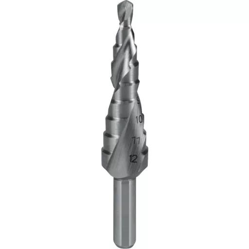 Lépésfúró HSS, spirál keresztmetszettel sodrott