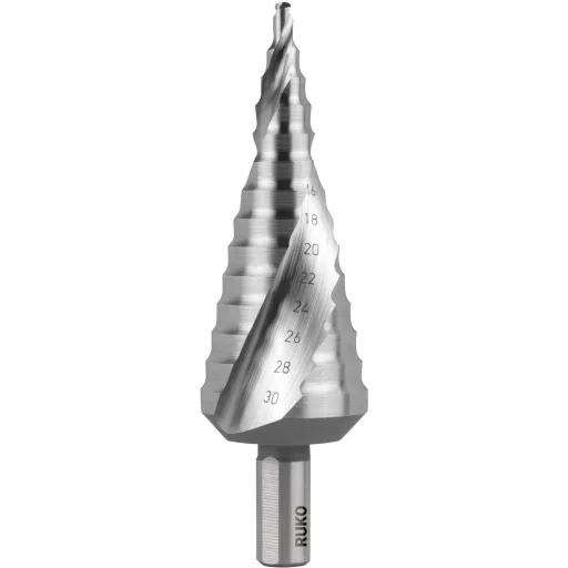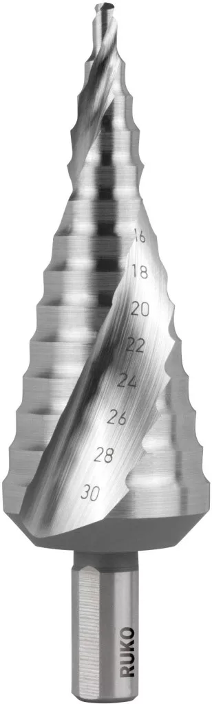 A mély és spirális fuvola tökéletes simaságot és nagy vágási teljesítményt nyújt. Különösen az olyan darabokat, amelyek nem törnek el, gondosan távolítják el, mint egy csavarfúró esetén. Ez csökkenti a beépített élek kialakulását és a hideghegesztést a széleken. A kúp megkönnyíti a fúrt lemezek visszahúzását.