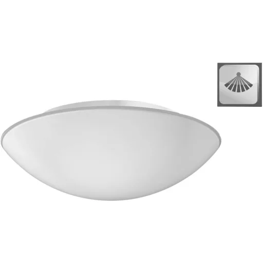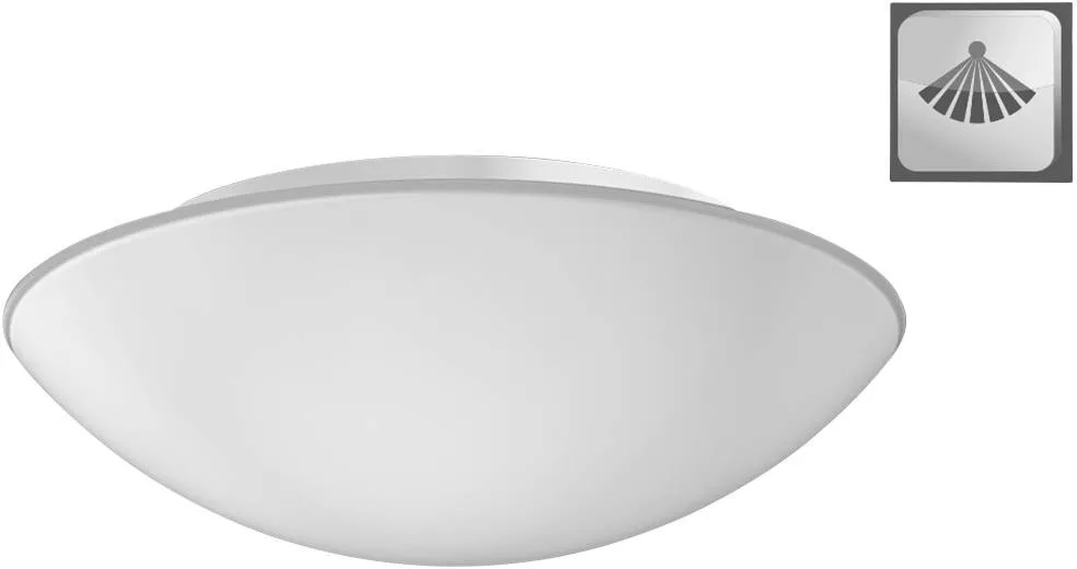 Jellemzők: Nagyon kiterjedt mennyezeti és fali világítótestek belső terekhez · Kézzel fúvott háromrétegű opálüveg (triplex üveg), szatén matt · A triplex üveg különösen homogén, lágy és tükröződésmentes fényt biztosít · Számos átmérővel 200-630 mm között · Műanyag tartókeret · A Fedés rugós rendszerrel · Üveg, opál, szatén matt, kézzel fújt · HF mozgásérzékelővel · IP43 mennyezeti szerelés, IP44 falra szerelés · A mozgásérzékelő paraméterei max. 4 m mennyezetre vagy falra szereléshez max. 2,7 m, HF detektor 5, 8 GHz ISM frekvenciasáv, fényerősségi szintek: nappali fény / 300 lux / 150 lux / szürkületi fény / sötétség / betanítás, érzékenység / tartomány 2 m, 10 m átmérő (20%, 100%) állítható, az idővezérlés kb. 10 másodpercről 30 percre állítható, észlelési tartomány 120 °, sugárzott teljesítmény 5,0 mW, kapcsolási teljesítmény: 800 W (ellenállásos terhelés), 500 W (fénycső, LED), kültéri használatra, a minden mozgás feltételesen megfelelő