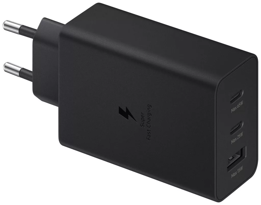 Műszaki adatok: Alkalmas: Smartphone, Tablet · Bemenetek (dugótípus): Euro dugó · Gyártói szín: Fekete · Kimenetek: 1x USB-A, 2x USB-C® · Kimenetek száma: 3 x · Teljesítmény: 65 W · Tápegység jellemzők: Kábel nélkül · Töltési technológia: Power Delivery