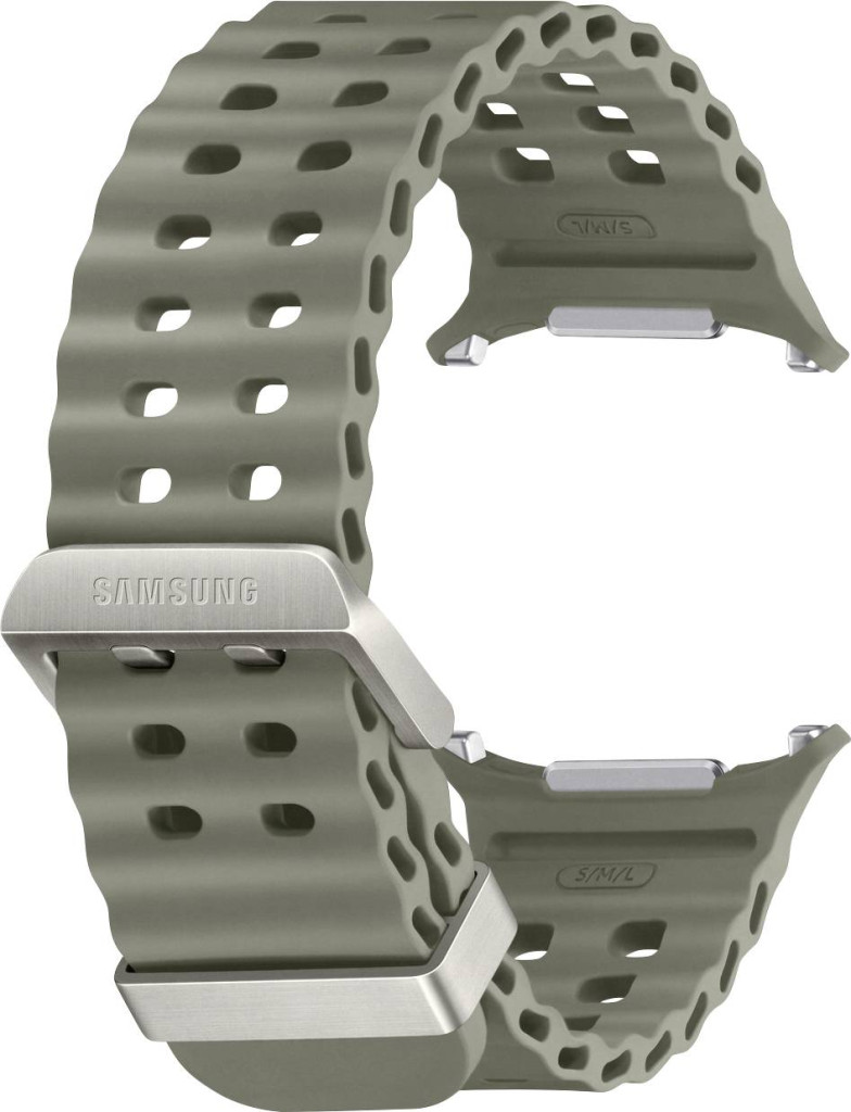 A Galaxy Watch Ultra Marine szíja speciális nitrilgumiból (HNBR) készült, és ideális izzasztó edzésekhez vagy mindennapi használatra. Nem érzékeny a hőmérséklet-változásokra, valamint kopásálló és vízálló. A jobb légáramlást biztosító szellőzőnyílásoknak köszönhetően a Marine Band kényelmes viseletet biztosít a csuklón, így a kihívásokat is könnyedén leküzdheted. A gyorscserélő rendszernek köszönhetően a hevedert másodpercek alatt, egyetlen gombnyomással cserélheti, további szerszámok nélkül. Válassz egy stílusodhoz illő szíjat, és adj Galaxy Watch Ultra készülékednek személyes megjelenést.