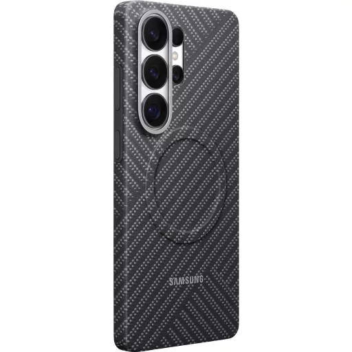 Az S26 Ultra Carbon Magnet tokja az elegáns dizájnt megbízható védelemmel ötvözi. Kiváló minőségű, tartós aramidból készült, karcálló felületet biztosít és véd az ütésektől. A tökéletesen illeszkedő forma második bőrként öleli körül az okostelefonodat, megőrzi annak karcsú kialakítását. Az enyhén texturált felület kényelmes és biztos fogást biztosít. A beépített mágnesnek köszönhetően könnyedén rögzíthetsz hasznos kiegészítőket, és kényelmesen használhatod a vezeték nélküli töltést.